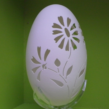 Deze ei werd met de hand gemaakt. Het garandeert u een uniek exemplaar in huis te hebben.